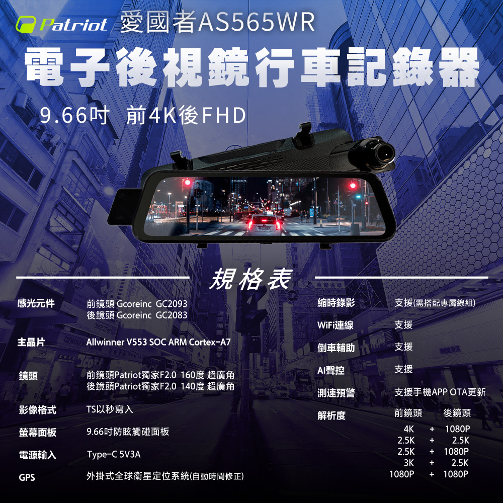 ● Patriot愛國者 AS565WR 電子後視鏡 *1