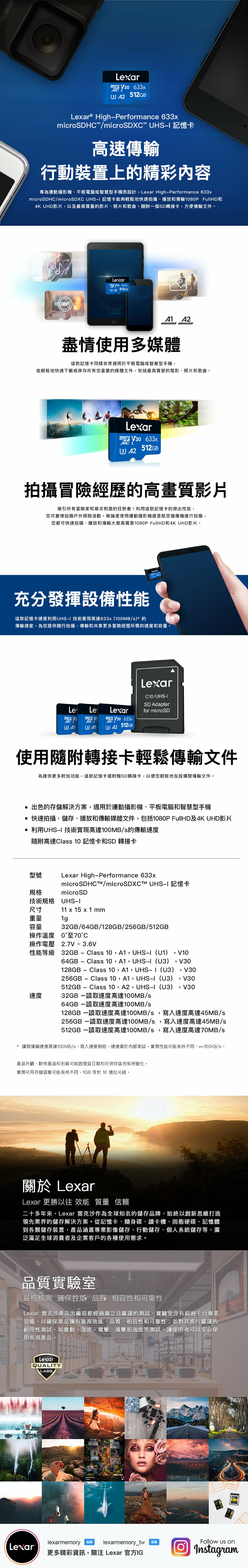●Lexar 雷克沙 633x microSDHC UHS-I A1 U1 32G記憶卡*1